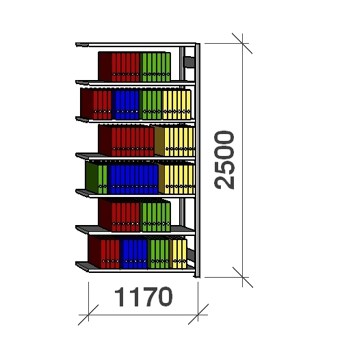Arkistohylly jatko-osa 2500x1170x300 200kg/hyllytaso,7 tasoa