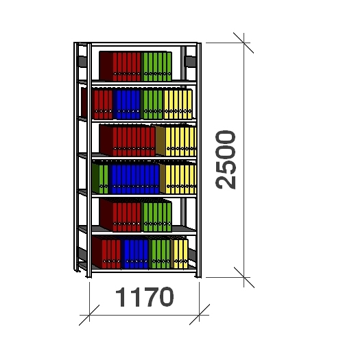 Arkistohylly perusosa 2500x1170x300 200kg/hyllytaso,7 tasoa