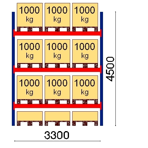 Kuormalavahylly perusosa 4500x3300 1000kg/lava,12 FIN lavapaikkaa