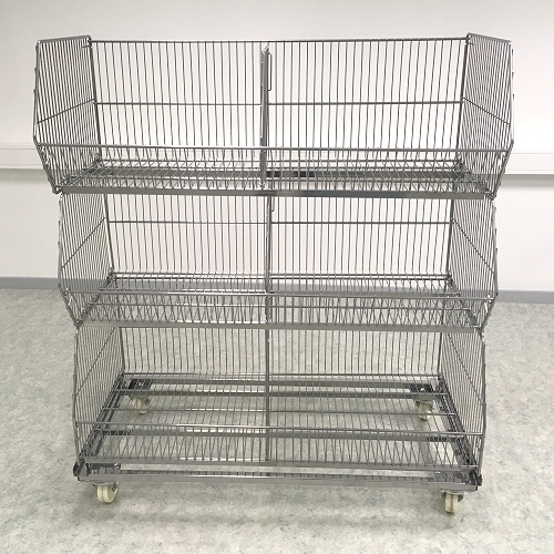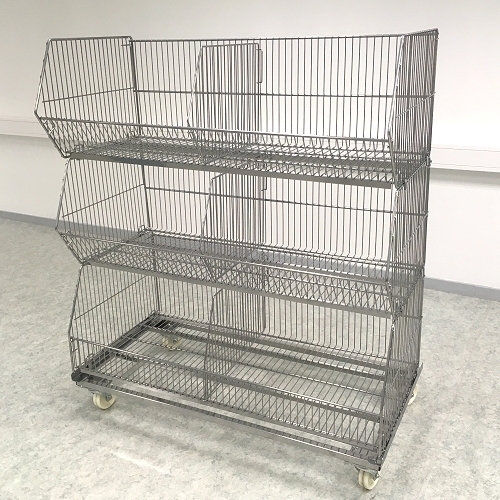• Pyörillä varustettu esillepanokori 3-ssa tasossa, leveys 1182 mm.