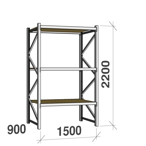 Metallihylly perusosa 2200x1500x900 600kg/hyllytaso,3 tasoa lastulevytasoilla