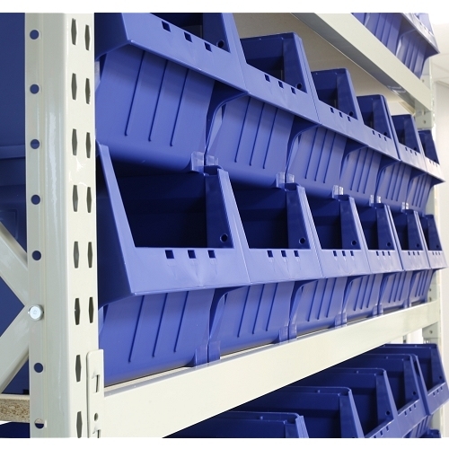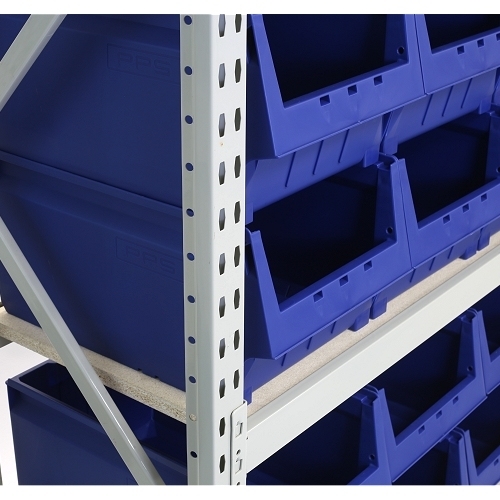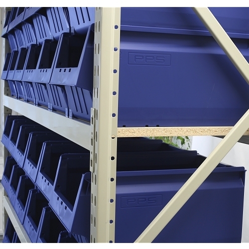 Kevytorsihylly 2100x1950x500 4 tasoa lastulevy 22 mm, 42 laatikkoa 500x310x250