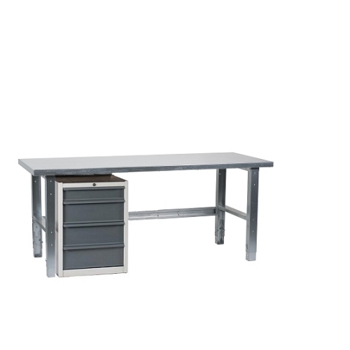 Työpiste 2000x800 terästasolla, sinkityt jalat, laatikosto 4-osainen
