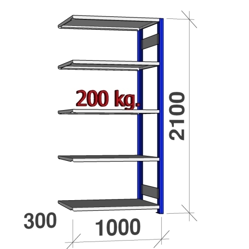 Pientavarahylly jatko-osa 2100x1000x300 200kg/hyllytaso,5 tasoa, sininen/Zn