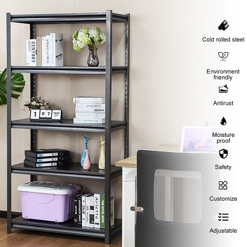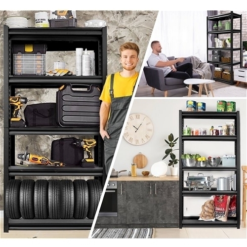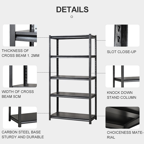 - Tukeva ja vakaa, maalatusta teräksestä valmistettu hyllyjärjestelmä, 6 teräksestä valmistettua hyllytasoa.