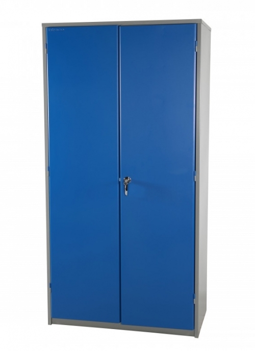 Vakaa, hitsattu työkalukaappi, erittäin kestävä teräslevyrakenne. - Lukittava - Mukana toimitetaan 4 hyllyä. - Jauhemaalattu siniseksi ja harmaaksi. - Säädettävät jalat