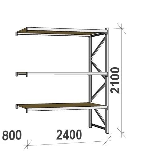 Metallihylly jatko-osa 2100x2400x800 300kg/hyllytaso,3 tasoa lastulevytasoilla