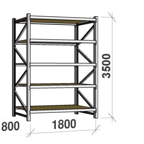 Metallihylly perusosa 3500x1800x800 480kg/taso,5 tasoa lastulevytasoilla MAXI