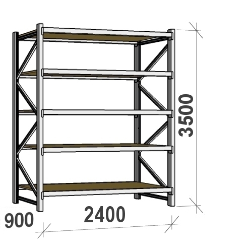 Metallihylly perusosa 3500x2400x900 300kg/taso,5 tasoa lastulevytasoilla MAXI