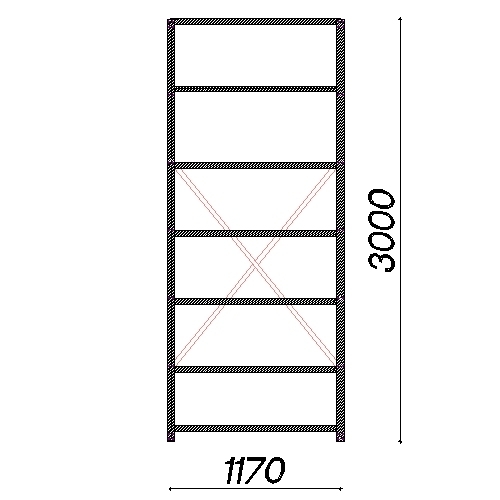 Varastohylly perusosa 3000x1170x300 200kg/hyllytaso,7 tasoa