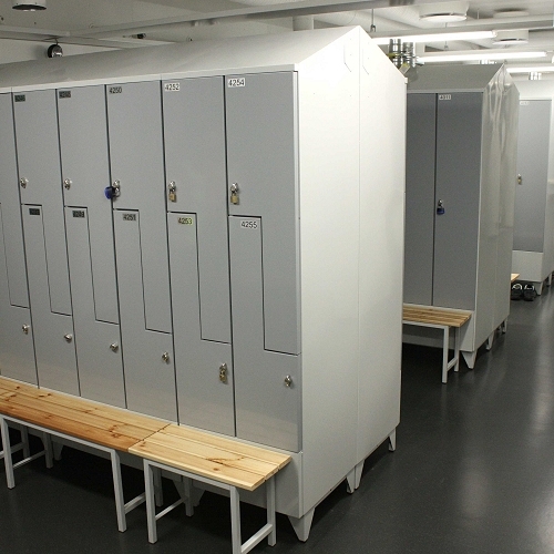Laadukkaat metalliset Z- pukukaapit pukuhuoneisiin, liikuntahalleihin, kouluihin tai tuotantotiloihin. Kaappi ja kaapin eteen penkki tai jalustapenkki ovat samanhintaiset. Kaapin alempi ovi on tällöin lyhyempi kuin itse kaappirunko. Meiltä saat myös täysikokoiset pukukaapit sekä erikokoiset lokerokaapit. Z- pukukaappi on paras tilaa säästävä kaappiratkaisu tiloissa, joissa ei ole mahdollista käyttää vakiokokoisia vaatekaappeja. Pukukaappien ovet ovat laminaattipintaisia tai polttomaalattua terästä. Erikoistilauksesta on ovet saatavana myös korkeapainelaminaattina. Pukukaappien osat on liitetty toisiinsa pistehitsauksella. Pukukaappien ovet ja rungon voi tilata eri värisinä vakiovärikarttamme mukaan ilman lisäkuluja. Jokainen kaappiosa sisältää vaatetangon ja 2 vaatekoukkua. Kaikissa kaapeissa vakiona säätöjalat, jalkojen korkeus 150 mm.