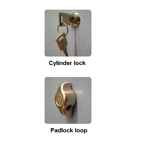 • Vakiona sarjoitettu sylinterilukko kahdella avaimella tai salpalaite.