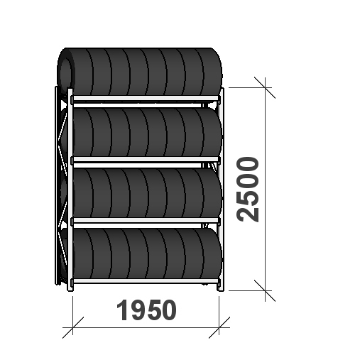 Tire racks are suitable for storing car tires and complete wheels. MAXI tire racks are designed to minimize the contact area of the tires on the rack. Thanks to the stepped crossbars, this is optimally distributed over the entire tire.