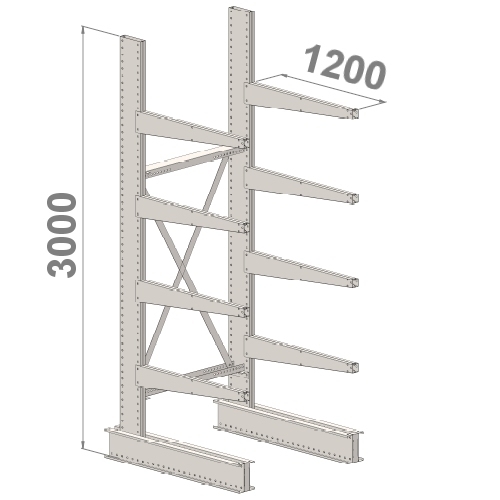 - The height of the starter bay is 3000 mm, the length of a cantilever 1200 mm.