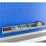 Rail For Plastic Bins On perforated Panel 555 mm with 4 bins 250x148x130mm gray