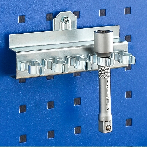 - Spring clip strip attached to the perforated wall.