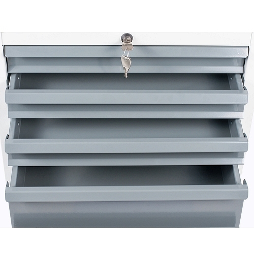 - The central locking system fitted as standard to all drawer cabinets operates on all drawers simultaneously.