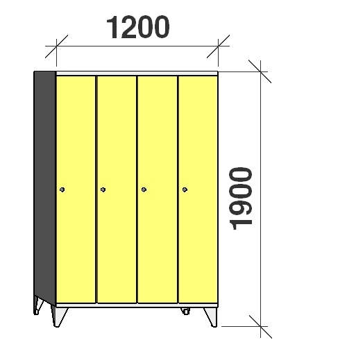 - The dimensions of the locker with legs are H x W x D (mm) 1900 x 1200 x 545.