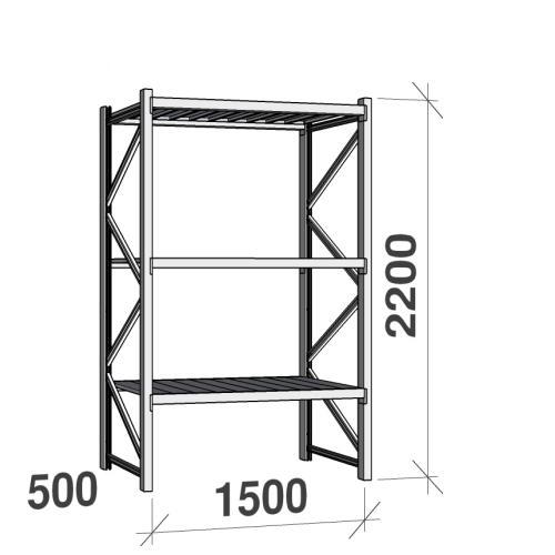 Starter bay 2200x1500x500 600kg/level,3 levels with steel decks