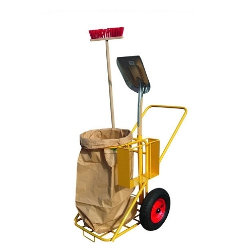- The cleaning trolley has fittings for bin bags, two tube holders for cleaning equipment and a basket for storing bin bags, etc.