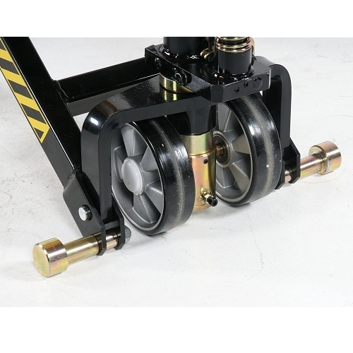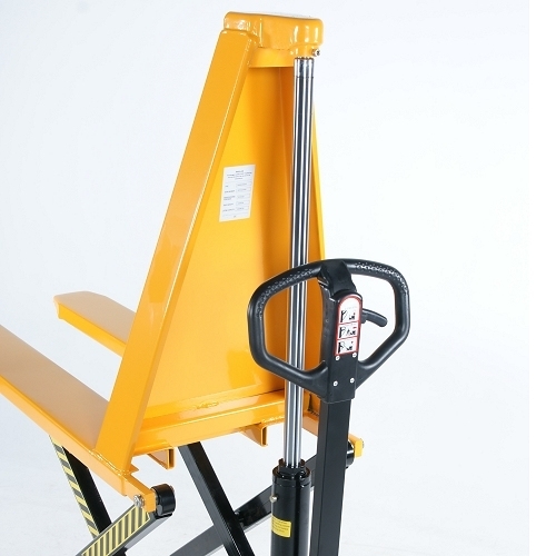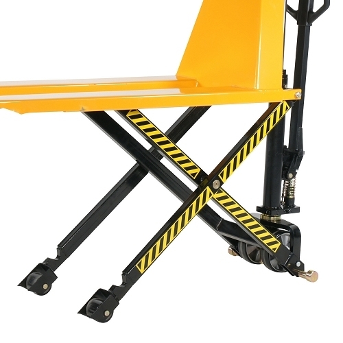 - Manual scissor lift with a single cylinder.
