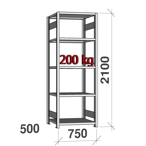 Starter bay 2100x750x500 200kg/shelf,5 shelves