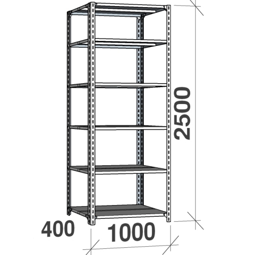 Angle shelf 2500x1000x400, 6 levels,120kg/level, gray upright/galv. shelves