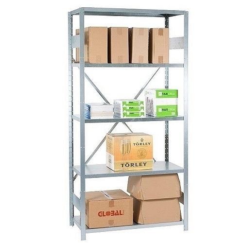 • This strong clip-style steel shelving is perfect for a whole range of different applications — from small parts storage in your warehouse or stockroom to general storage in your garage. These shelving sections are composed of shelves, clips, posts and x-braces. This type of shelving is popular because it’s easy to put together using clips that hold the shelves.
