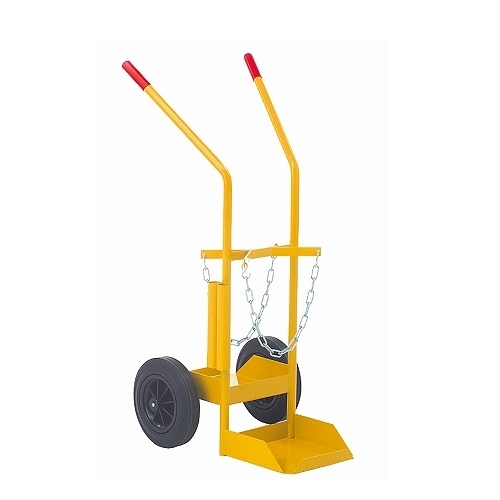 - Bottle truck for 2 tubes/bottles in yellow powder coating.
