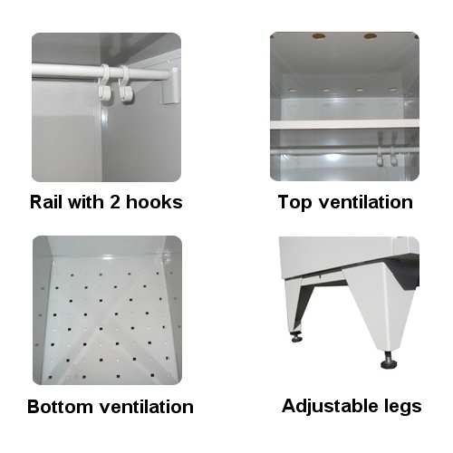 - Ventilation holes are located at the bottom and in the ceiling of the locker.